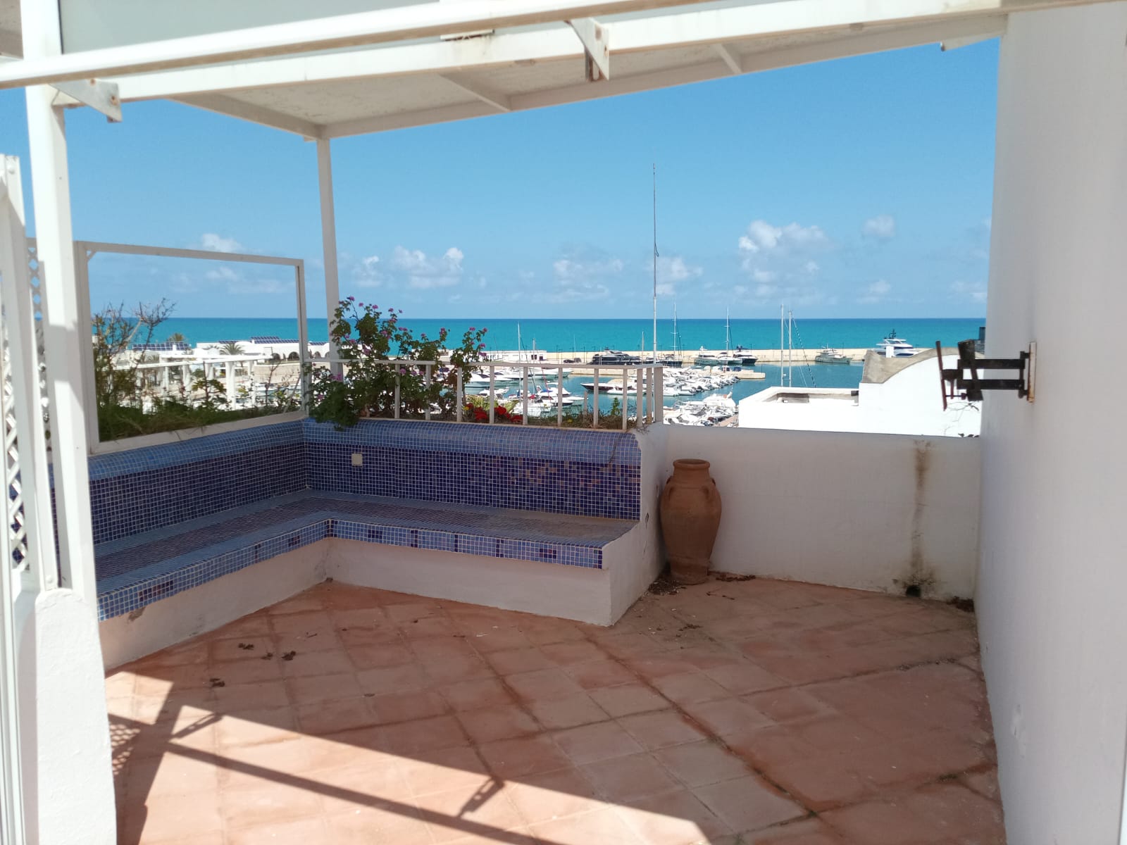 Au second étage le S+3 bénéficie d’une belle terrasse solarium aménagée avec une vue panoramique sur la Méditerranée, la marina et ses yachts.